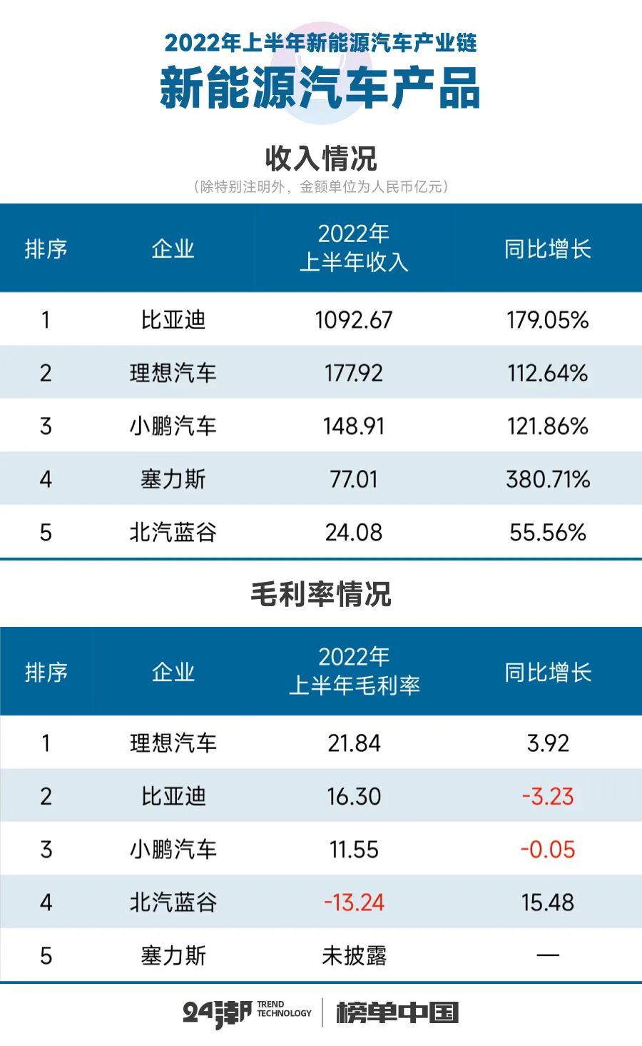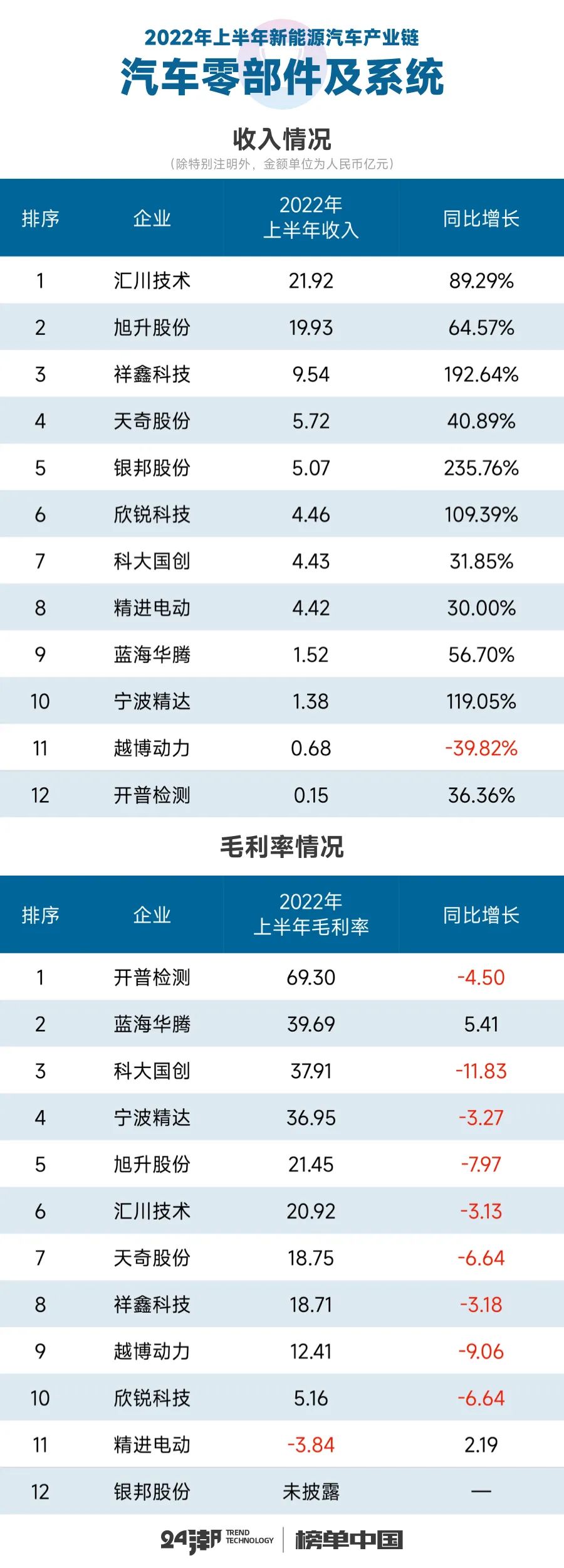 为了搞清这个问题,近期24潮研究团队梳理所有100多家上市企业2022年上半年在新能源汽车17个不同环节的业务营收及毛利率数据,相信读者从这些核心数据的变化中能找到最真实的答案。