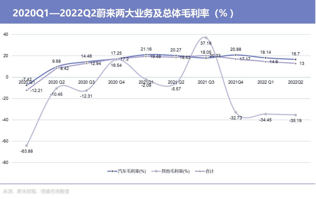 而在两大业务有限的营收增长下,蔚来的毛利率却进一步下滑。