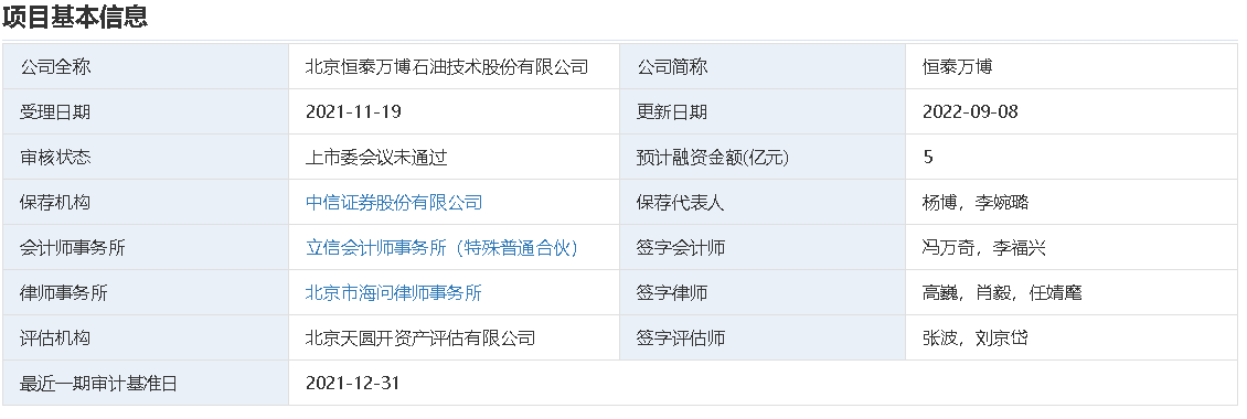 深交所官网9月8日披露消息显示,北京恒泰万博石油技术股份有限公司(以下简称“恒泰万博”)创业板IPO被否。