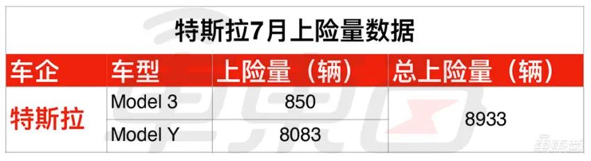 尽管如此,特斯拉8月份的销量也非常惊人。7月份特斯拉的销量只有28217辆,其在国内上险的车型只有8933台,Model Y的上险量只有8083台,Model 3更是仅850台。