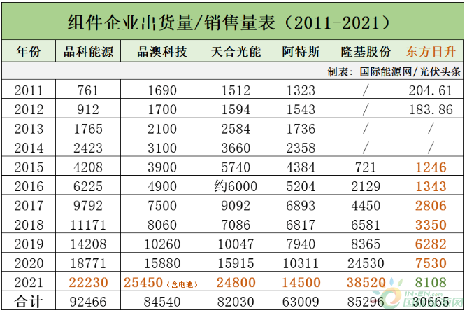 2011年东方日升组件产能700MW,2021年,这个数字达到了19.1GW,增长了27倍。这只是落地产能,还有规划中的产能。