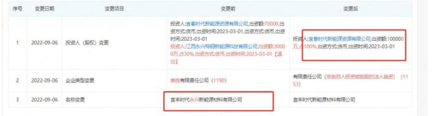 华夏能源网注意到,龙蟠科技实际上就是永兴材料的“接盘侠”。龙蟠科技公告中的宜丰时代,就是由宜丰时代永兴新能源材料有限公司(以下简称“宜丰时代永兴”)变更而来,后者是当时永兴材料和宜春时代合资成立的公司。