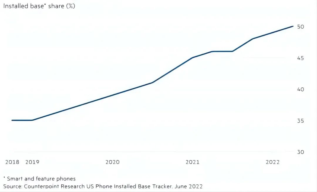 如今苹果在手机市场,依靠自己就已经完成了这样的结果,iPhone 、iOS和苹果自家的A系列和M系列芯片,苹果用封闭打赢了开放。今年6月,美国智能手机市场中,iOS的活跃用户占比达到了惊人的50%,苹果自己打平了包括150多款手机的整个安卓阵营。
