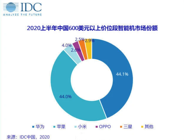 曾几何时,国产手机品牌都曾拥有过一个梦想——超越苹果。华为的余承东每年发布会都要提到的目标——超越苹果。余大嘴年年说,还真在2020年上半年超过了苹果,市场占有率44.1%,苹果是44%。虽以0.1%的比例微弱胜出,却也有过梦想照进现实的美妙时刻。