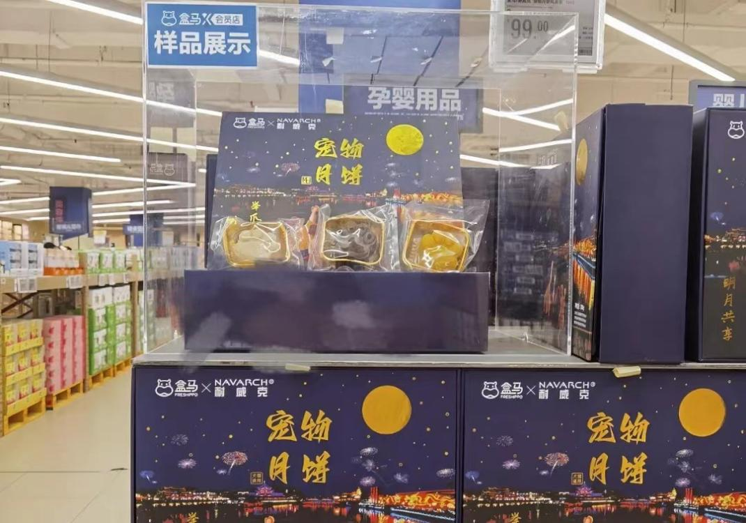 此外,今年盒马也和宠物品牌耐威克推出了宠物月饼礼盒,内含6枚,分为蛋黄味、牛肉味和肉松味,售价为99元一盒,一枚单价为16.5元。