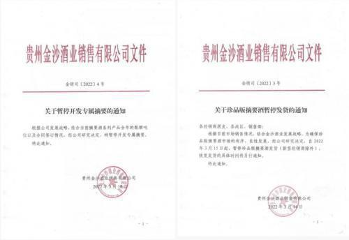 2022年3月14日,贵州金沙酒业销售有限公司发布珍品版摘要停货通知。3月18日,又决定暂停开发专属摘要。