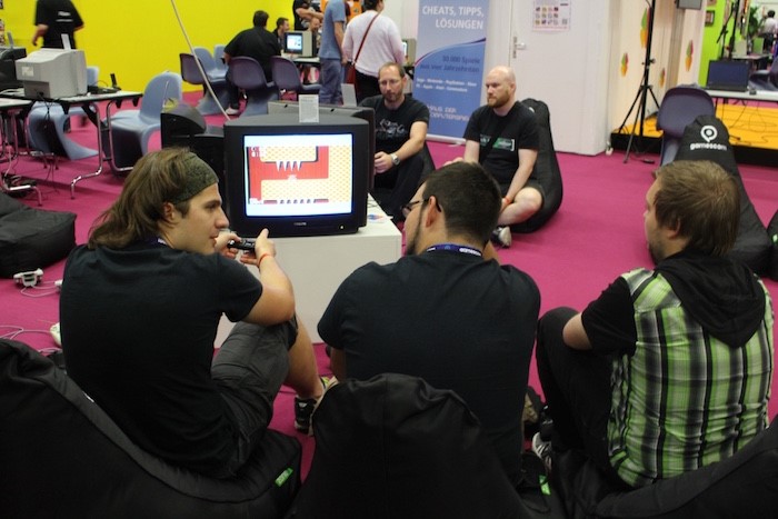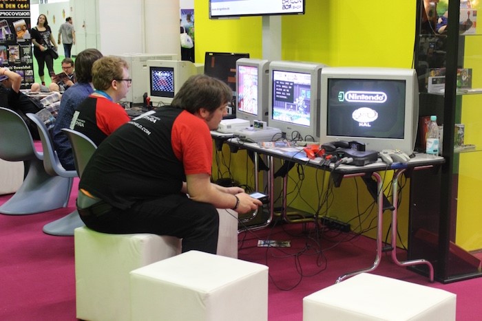 观众在现场玩经典任天堂经典游戏。
