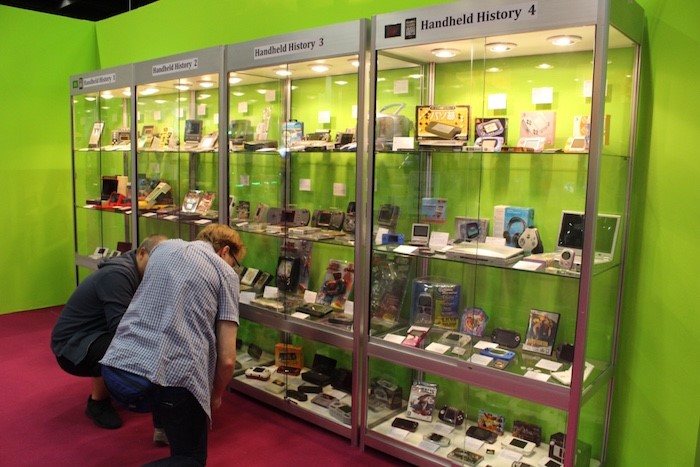 橱窗里展示的是游戏掌机发展历史,汇集了历史上的各式游戏掌机。