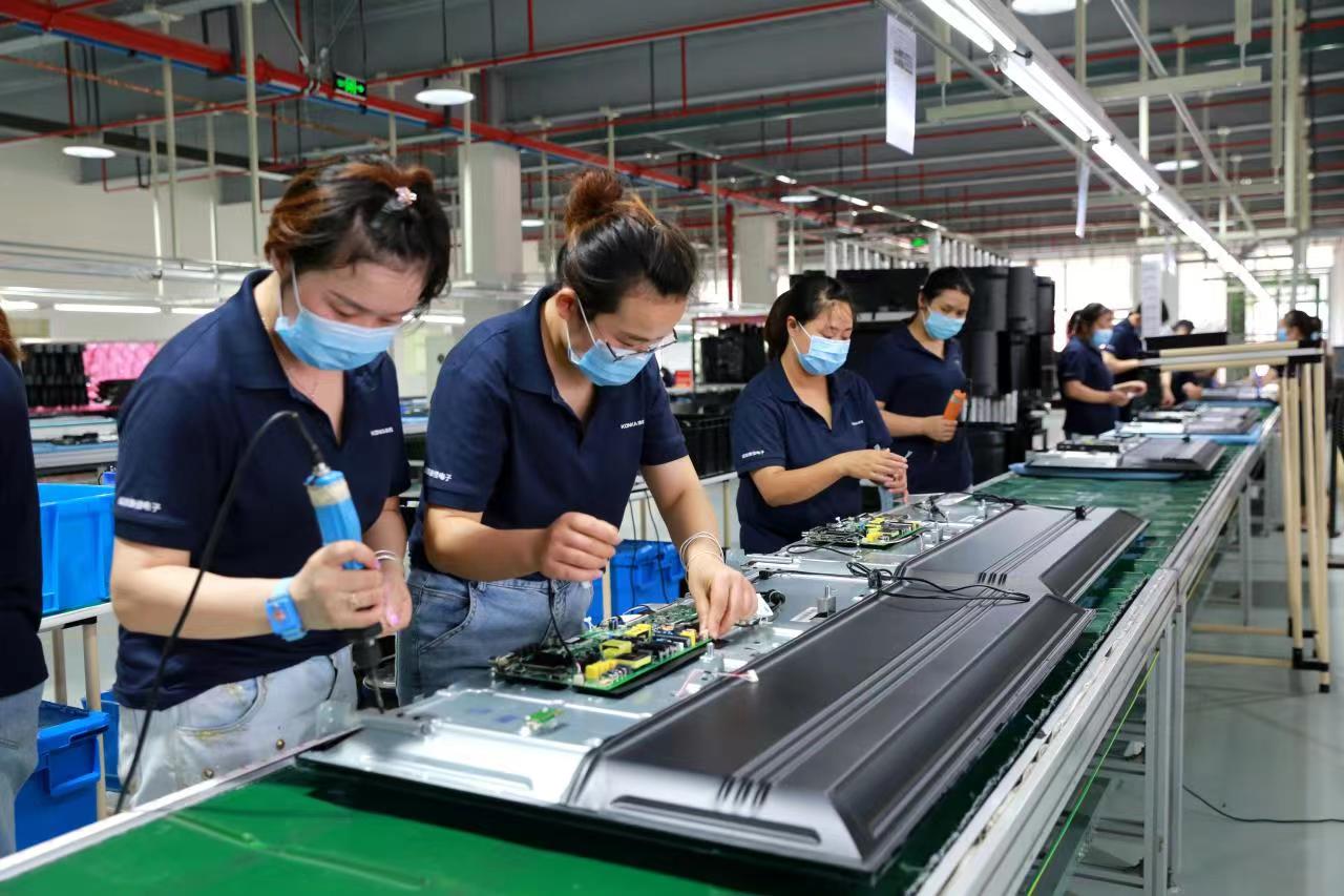 当日下午,停产近一周的康佳公司正式复工复产,持有24小时核酸证明的200余位本地员工全部返岗,2条彩电生产线顺利开足马力进行生产,日产能达到3000台。据悉,9月正值彩电行业生产旺季,环比订单增加90%,但受前期高温限电及疫情的影响,该公司生产交付遇到了巨大挑战。“我们计划临时增加一条生产线,再招聘约80名本地员工,全力冲刺订单的交付工作,青白江区也正在积极帮我们协调员工招聘等事宜。”