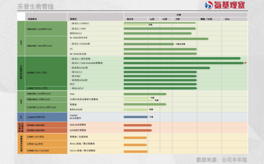 在PD-1之外,乐普生物管线的重点是ADC。如下图所示,公司布局了五款ADC,分别靶向HER2、CD20、EGFR、TF、CLDN18.2。