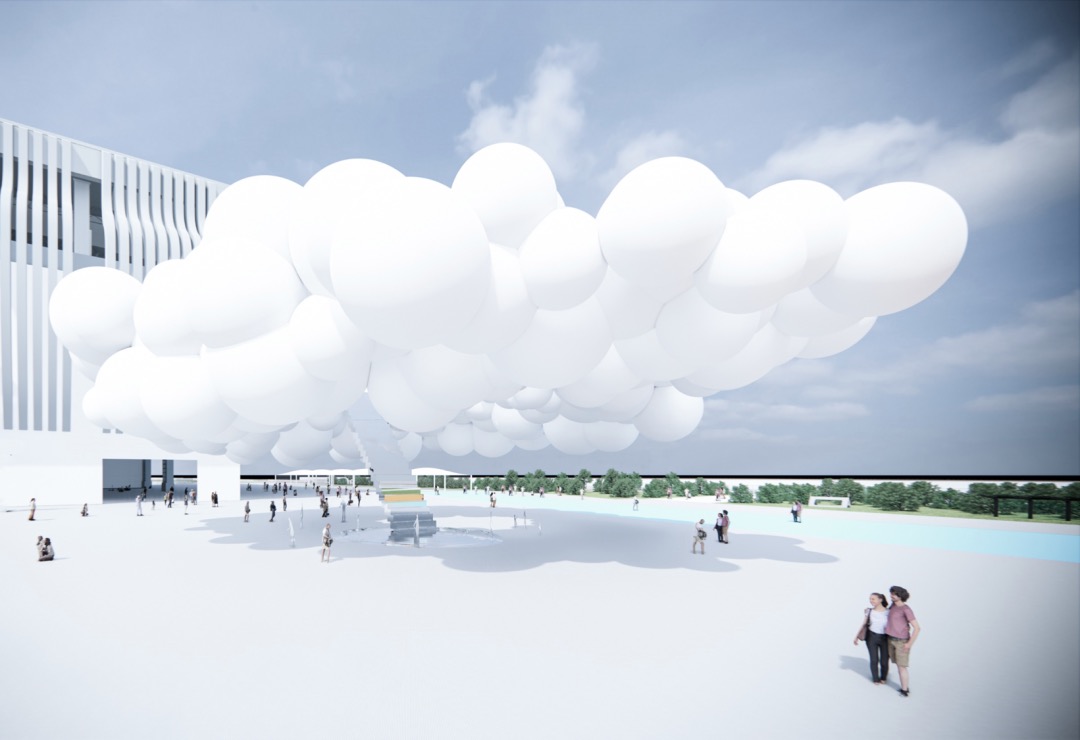 “设计之梦”位于主展馆和主会场中间的广场,成为了一朵不会飘走的云,设计团队采用环状气球群营造出了云朵般奇妙的半室外空间。
