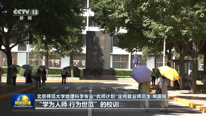 北京师范大学地理科学专业“优师计划”定向就业师范生 熊国锦:总书记在回信中说,希望我们继续秉持“学为人师 行为世范”的校训,努力成长为党和人民满意的“四有”好老师,这让我真切地感受到总书记对我们的关怀与期望。