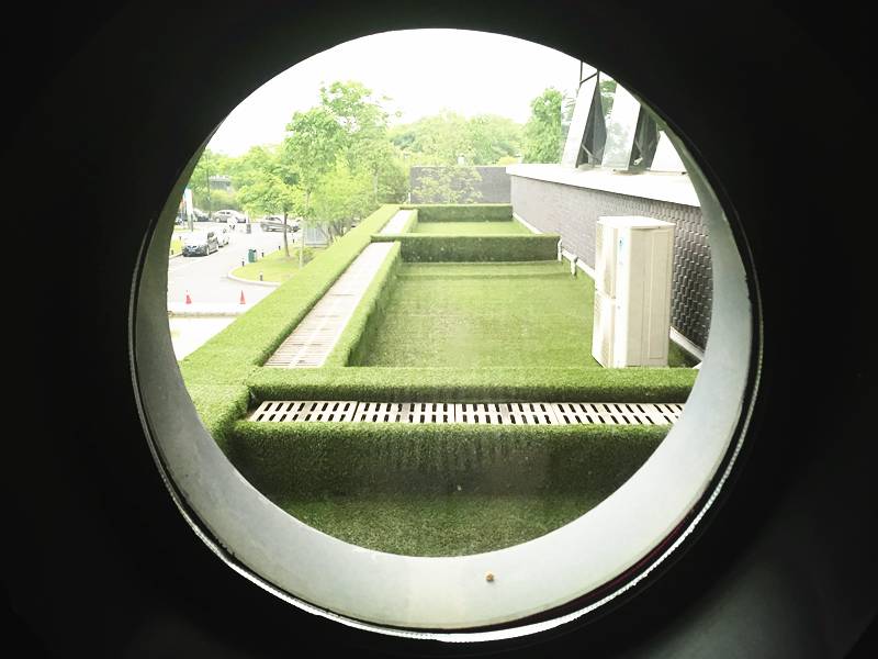 走入大厅,除了当中一长排座椅,其余大部分空间留白,使人感觉视野开阔。视线尽头,透明玻璃的另一侧,则是绿色的竹子小景,清新雅致。加上橘色灯光的晕染,光看这个大厅,就已经让人感到惊艳了。