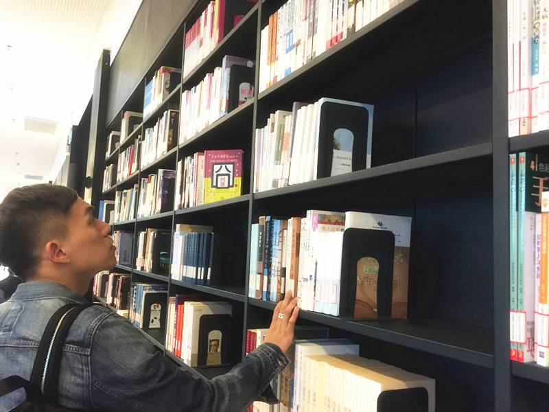 顺着普通文献借阅区的楼梯至二楼,仿佛打开了另一个世界。因为挑高与大片落地窗的设计,使得这里比一楼宽敞明亮了许多。我细细一看,这里的藏书分类要比楼下的bigger高许多,设计、视觉、时尚类书籍,加上大量的外文原版书都藏在这里。因为藏书品类的关系,在这里阅读的人似乎更具有文化时尚圈人的气质。最令我欣喜的是,在市面上买不到,或者单价很高的外文原版书都成套罗列在这。