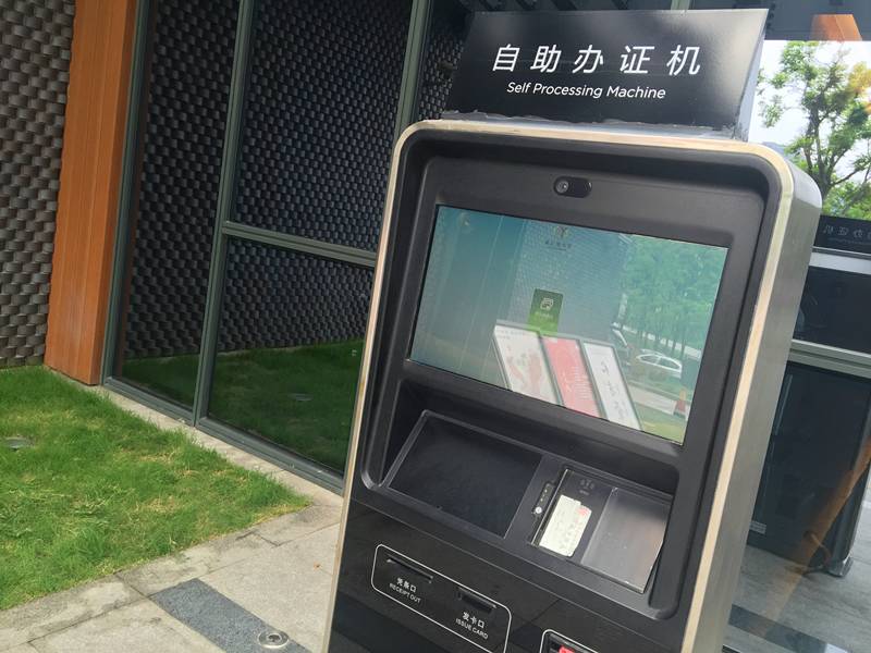一楼门口和楼梯处,分别有一台自助办证机。你把身份证或其它证件在上面一扫,个人信息就出来了。然后输入电话,放入100元押金,一分钟不到,借阅卡就能办好,要记得取回身份证件哦。