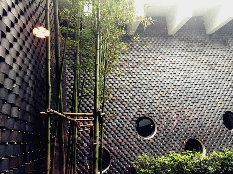 走近嘉定图书馆,绵延错落的一片建筑群,充满现代建筑结构的外形,跟网上流传的一系列图片一致。它坐落于嘉定中心区域,有着一份难得的闹中取静。在现代建筑的“型”下,其实细节满满的中国风,从墙面整齐叠加的古朴陶瓦墙就可以看出设计师高举的新中式大旗。据说这里号称要缔造出一座“现代孔庙”,这样才能与嘉定这个文化积淀深厚的历史名镇相匹配。大量的圆孔窗以及竹子、绿植盆景塑造的江南园林意境,小巧流水的明亮开阔感,让人能屏住气、沉下心来好好品味知识。