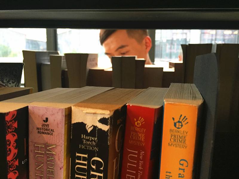 图书馆给你一次借五本的额度,你需要在一个月内归还。而你所有借书、还书行为都是不需要与工作人员交接的,因为嘉定图书馆用的是3M自动图书系统。流程就像国外超市结账一样简单:先把你的借阅卡插入读取槽,把你要借、还的书摆放在中间的平台上,机器就会自动读取记录,然后打印凭条。