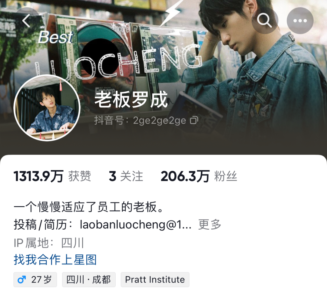 始于“钞能力”,终于才华和搞笑天赋。罗成不仅把自己“折腾”成在抖音拥有200万粉丝、单个视频平均点赞过十万的大号,更重要的,他还“花式振兴”了好利来这家30年的老企业。