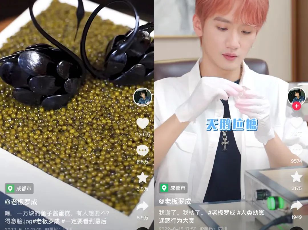 最近,一个名叫“老板罗成”的抖音号火了,这个号一边拍中二视频,一边认真做蛋糕。