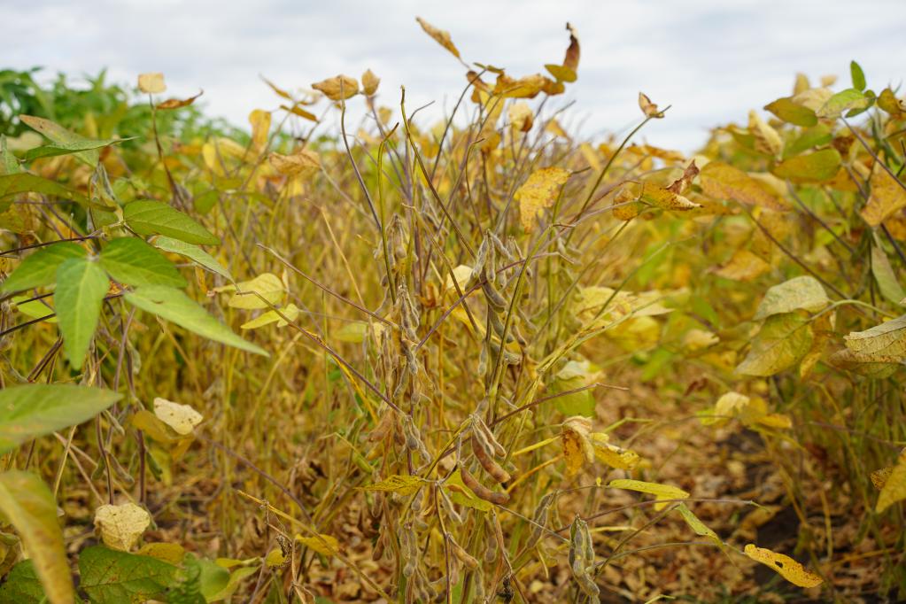 大豆田里进入成熟期的大豆(新华社记者王鹤 摄)