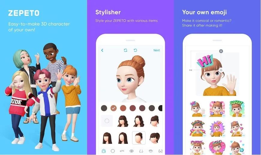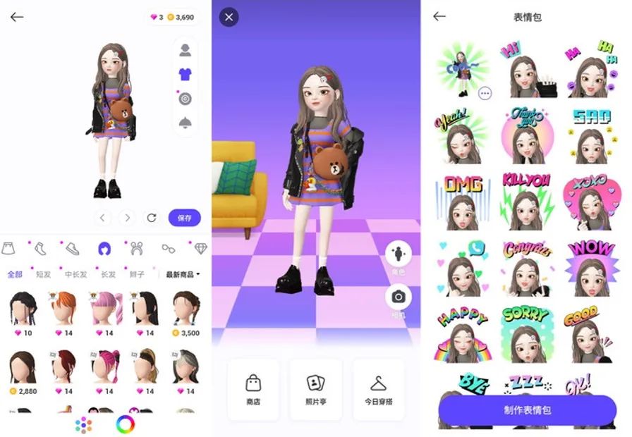 注册Zepeto后,用户按照自己的喜好先“捏脸”,然后用奖励的金币购买服饰装扮自己的虚拟形象;还可以购买解锁不同的姿势、动作,选择不同的背景跟朋友合照或合拍视频;同时,用户也可自制内容,并赚取收益。