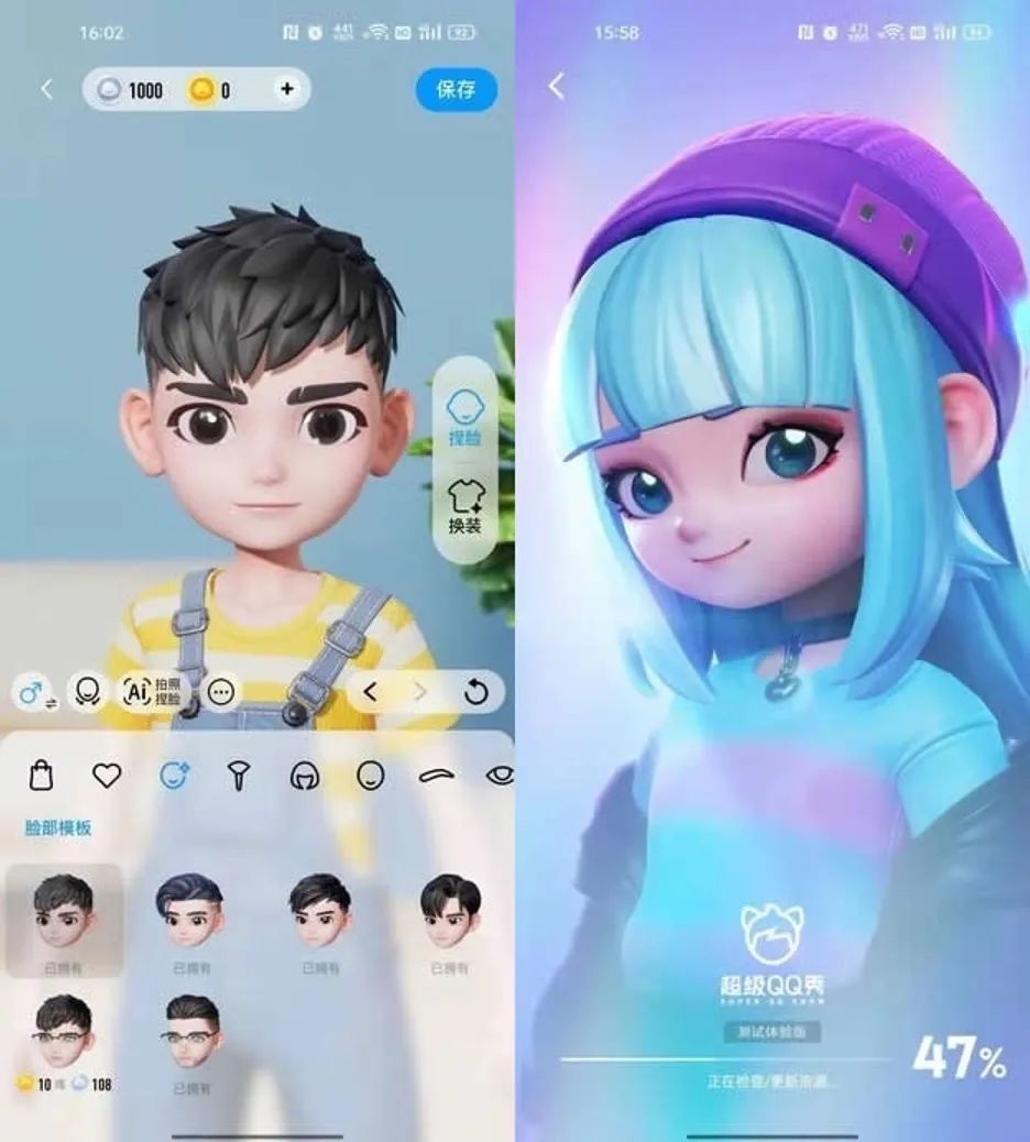 作为老大哥,腾讯试图通过旧瓶装新酒的方式,为其两大社交产品QQ和微信增添一些3D元素,以蹭上元宇宙社交的概念。一些试玩过超级QQ秀的用户表示,“捏脸”、换装、购买家具、装扮“QQ小窝”,更像是一个低配版的“动物森友会”。