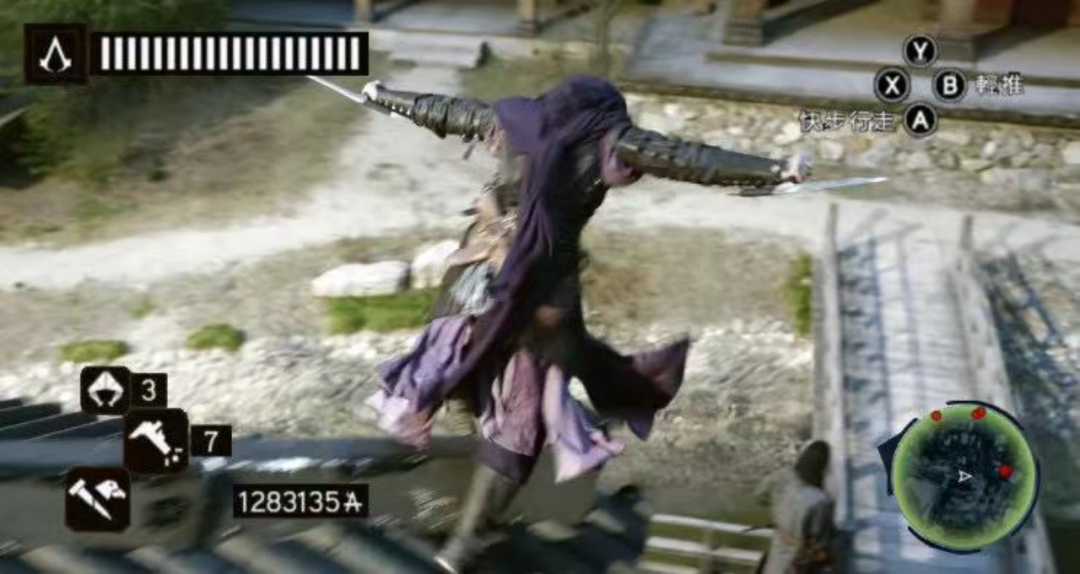 遗憾的是,邵君没有因此成为正传作品主角,随后《刺客信条3》的故事舞台被转移到北美,大获商业成功,1个月卖出700万套。由此系列开启了“殖民地三部曲”,中国刺客的存在感只体现在一件名为“绳镖”的武器上,剧情中它由邵君发明并传到西方。