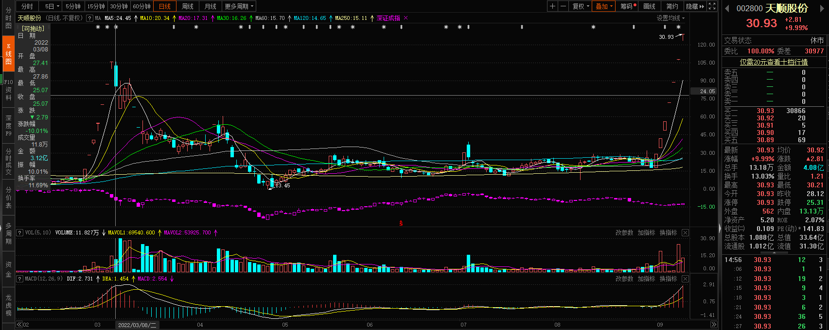 游资在此次推高天顺股份股价的过程中扮演重要角色。仅看9月9日龙虎榜数据,居买一席位的营业部有“顶级游资”之称的国盛证券宁波桑田路,净买入5603万元;华鑫证券上海宛平南路居买二席位,净买入3115万元;申港证券深圳深南东路居买三席位,净买入1390万元;浙商证券杭州五星路居买三席位,净买入1390万元;中国银河证券大连金马路居买四席位,净买入2584万元;中国银河证券大连金马路居买五席位,净买入2400万元。
