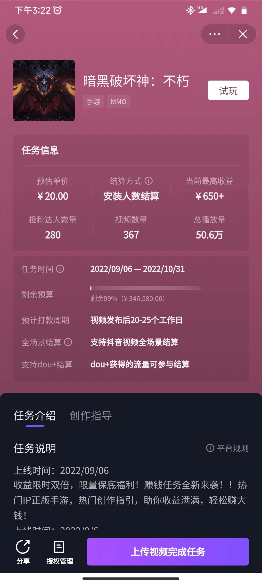 1、结算方式差异:视频号小任务目前是视频质量、播放量、转化综合计算。上线一年多的抖音游戏发行人计划可以实现包含CPM、CPA和一口价(采买)等在内的多样化结算,多为单一指标结算。