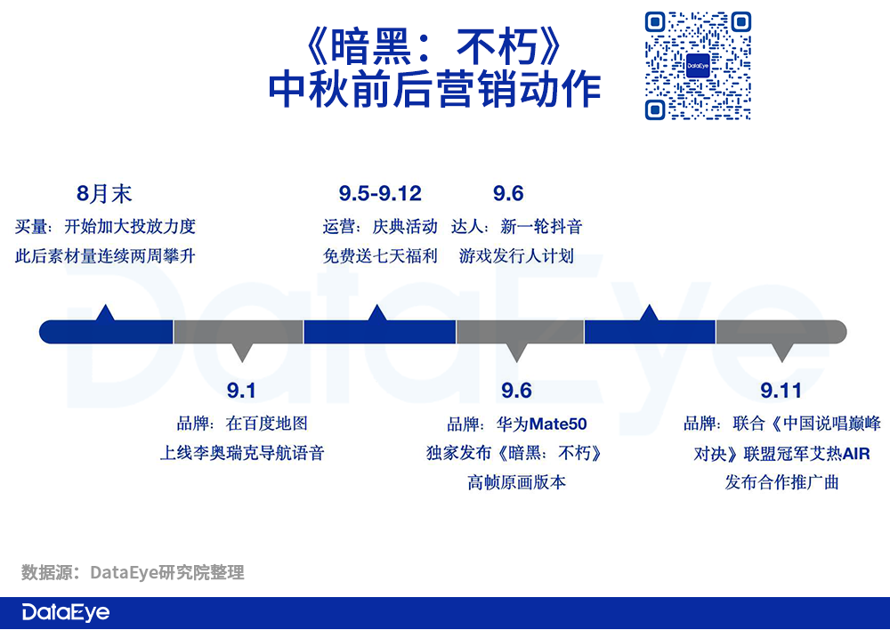 中秋前后《暗黑:不朽》共有3次大品牌传播活动,如图的直线下方所示。