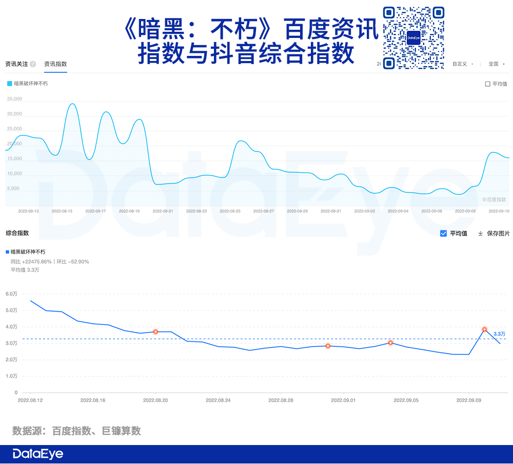 百度资讯指数与抖音综合指数都显示:近一个月,“暗黑破坏神不朽”关键词热度持续下滑,在9月9号前后出现一定幅度回升。