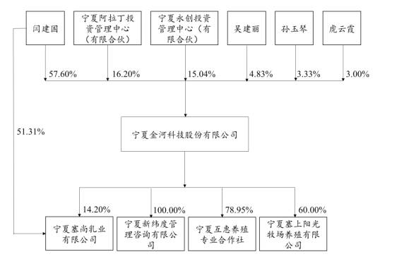 目前旗下拥有3家全资及控股子公司,1家分公司。阳光牧场、互惠养殖、新纬度、第一子公司(已注销)、金河房地产(已注销);兰州分公司、银川乳业分公司。
