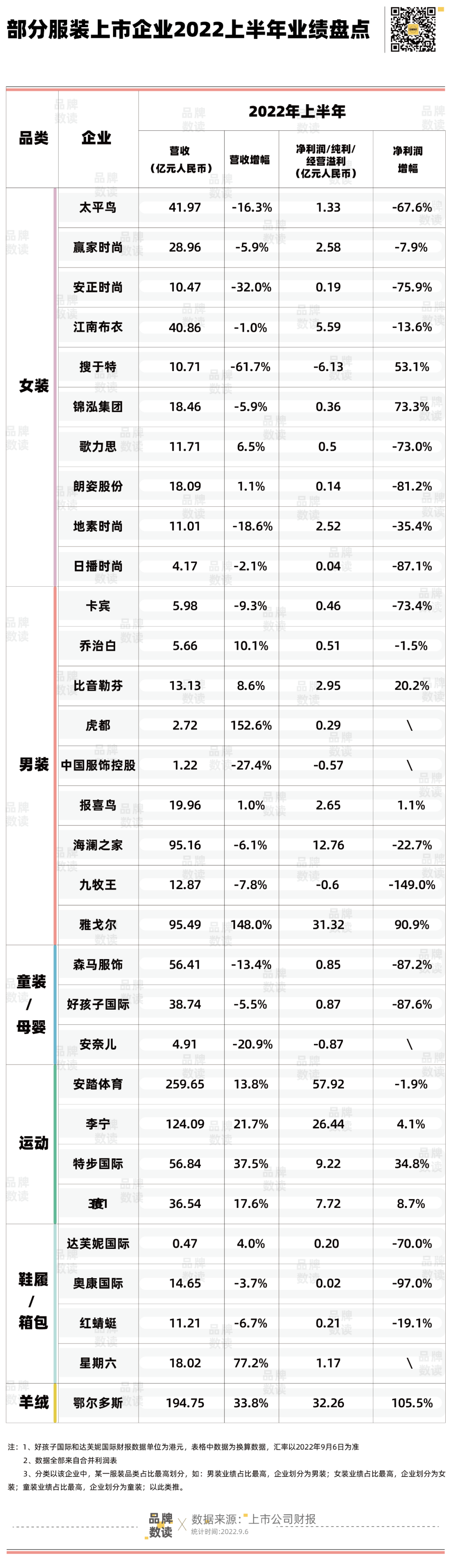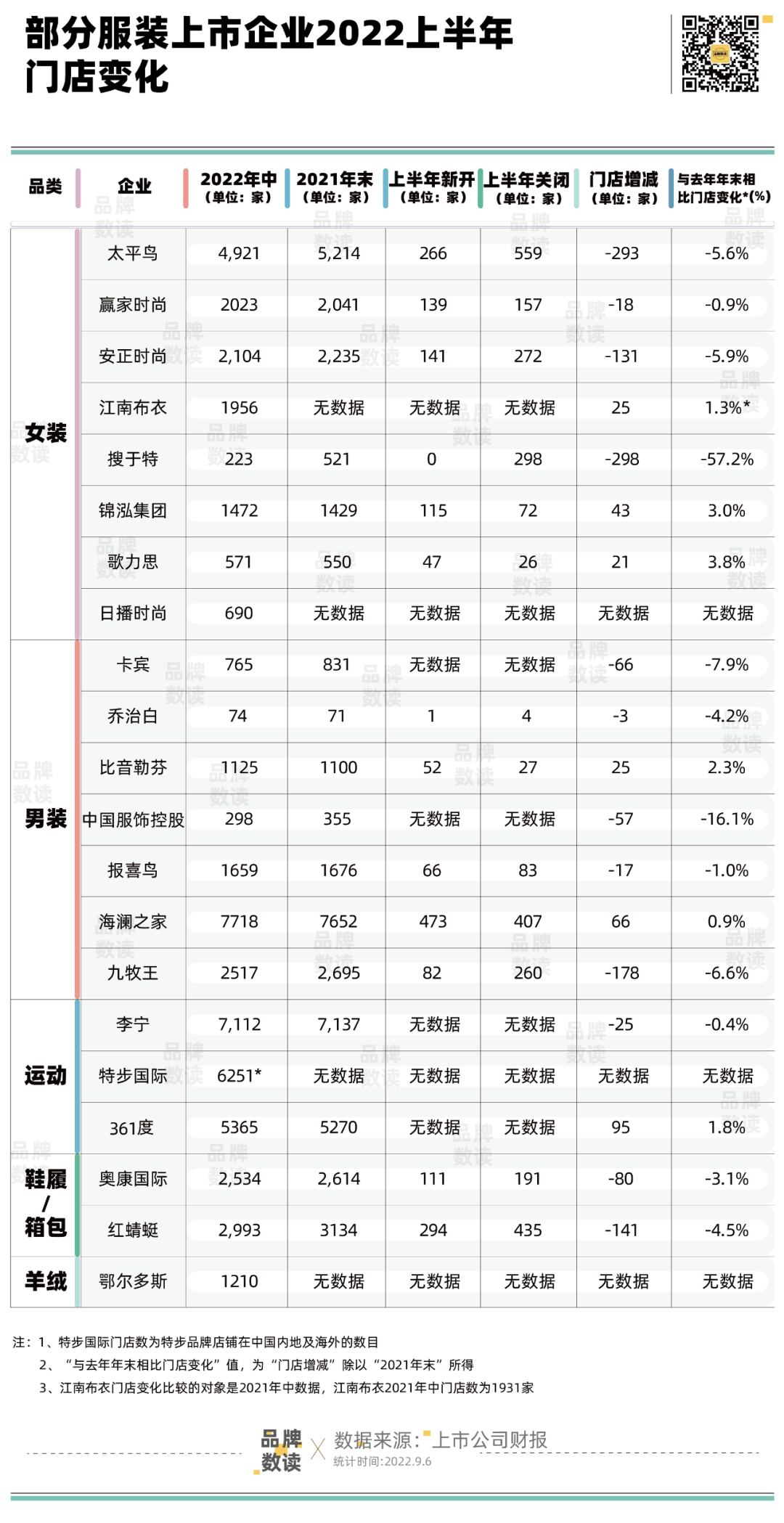 透过财报看行业,品牌数读整理了31家上市服饰公司的表现,以数据解析上半年服饰行业的动荡及各家的适应能力,并重点关注各家在渠道上的调整。整体而言,呈现出2大趋势: