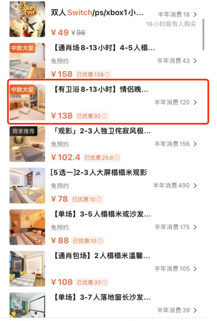 都是“大厅+包厢”或“纯包厢”的开店模式,许多私人影院只需将原本的两三间房加几台Switch或PS主机,便能轻松上车这波“主机店开店潮”。甚至,为扩大服务范围,有的游戏馆推出了包含卫浴的情侣包厢,增加“旅馆”的经营范围,以精准对标情侣用户。