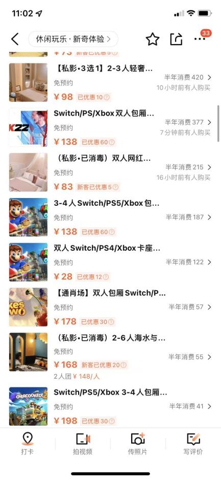 在点评或地图上搜索“PS5”“Switch”“主机”等关键词,搜索结果大多是以“主机游戏体验馆”“PS5,Switch体验馆”“主机体验馆”为后缀的纯享主机游戏馆,剩余仅仅只有20%左右的店铺在提供主机以外的,如点播影院、迷你KTV、桌游等多种年轻人喜爱的室内娱乐的综合性娱乐场。