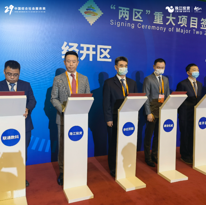 2022年9月1日,珠江产业添力加码,赵津董事长在中国国际服务贸易交易会上,代表珠江投资华北公司与亦庄开发区管委会就马驹桥B06珠江·三惠智慧物流产业园项目现场签约正式入区,共建北京“两园”建设,助力经开区产业发展。