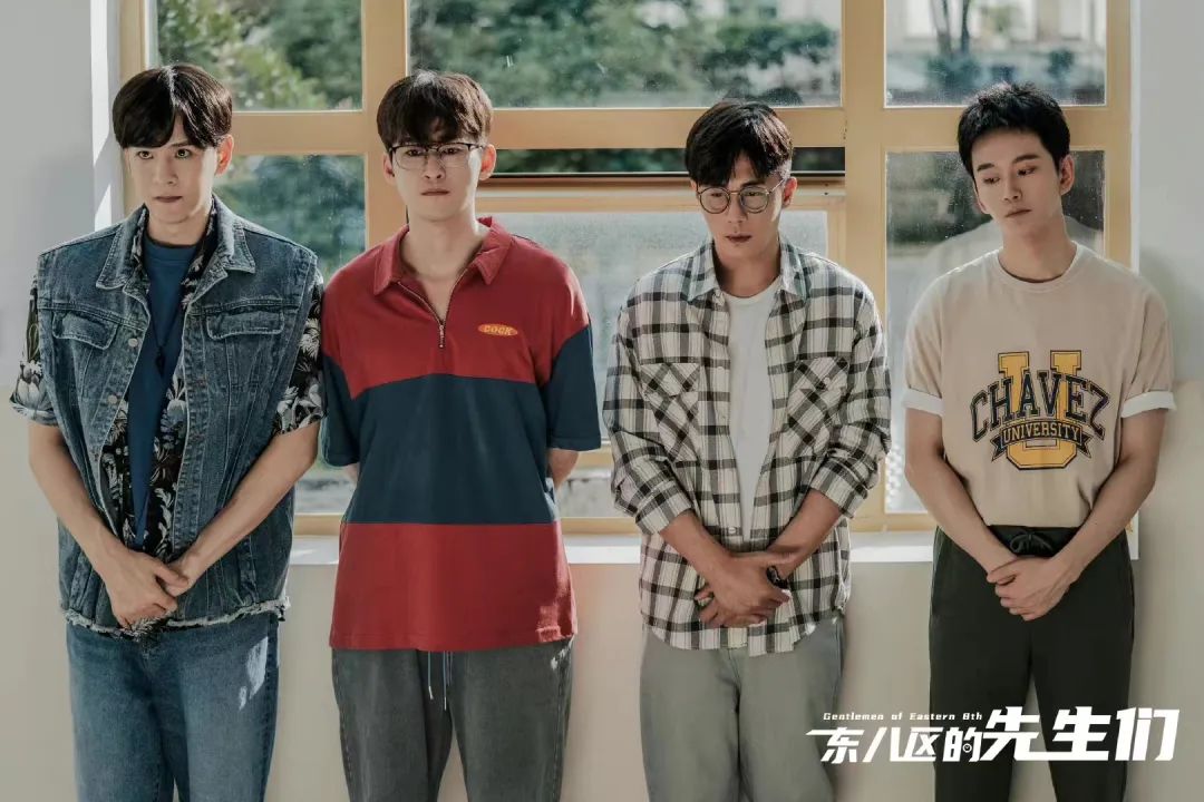 而男性在荧幕上的情感表达,和他们在社会中被规训的类似,是内敛的、不轻易外露的。这一点从《东八区的先生们》里能窥见端倪,四位从大学至今的好友,每每聚在一起也不过是看球赛、打游戏和喝酒,顶多炫耀一下自己最近又泡到了什么样的女生。
