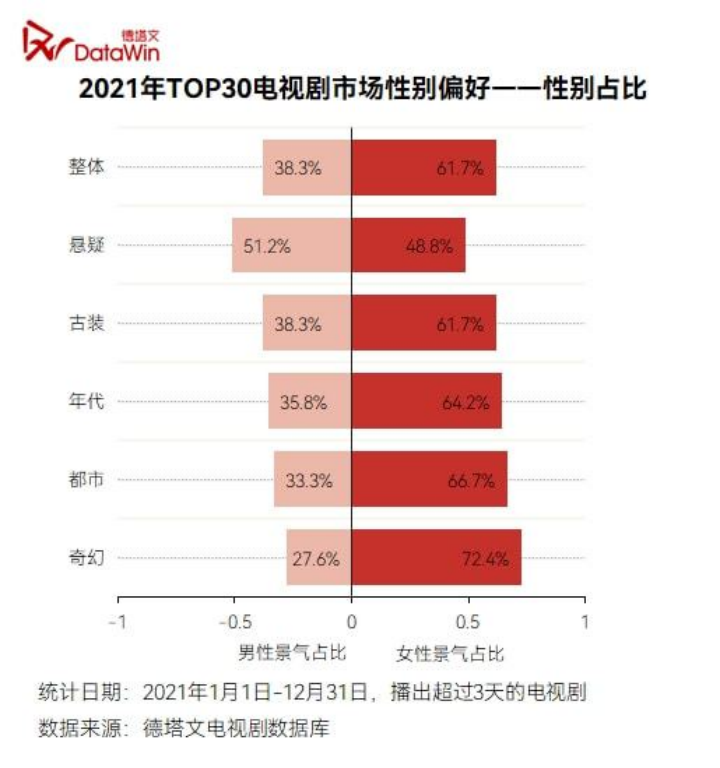 都市剧的观剧主力向来是女性,这是从肥皂剧时代就存在的规律。用户画像也佐证这一点,2021年德塔文白皮书显示,都市剧的女性景气占比来到66.7%,是男性用户的两倍之多。