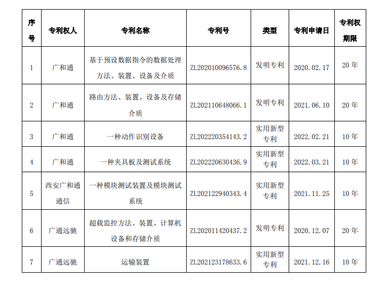 广和通9月13日公告,公司及全资子公司西安广和通通信、广通远驰近日收到中华人民共和国国家知识产权局颁发的7项专利证书。专利名称分别为“基于预设数据指令的数据处理方法、装置、设备及介质”、“路由方法、装置、设备及存储介质”、“一种动作识别设备”、“一种夹具板及测试系统”、“一种模块测试装置及模块测试系统”、“超载监控方法、装置、计算机设备和存储介质”、“运输装置”。