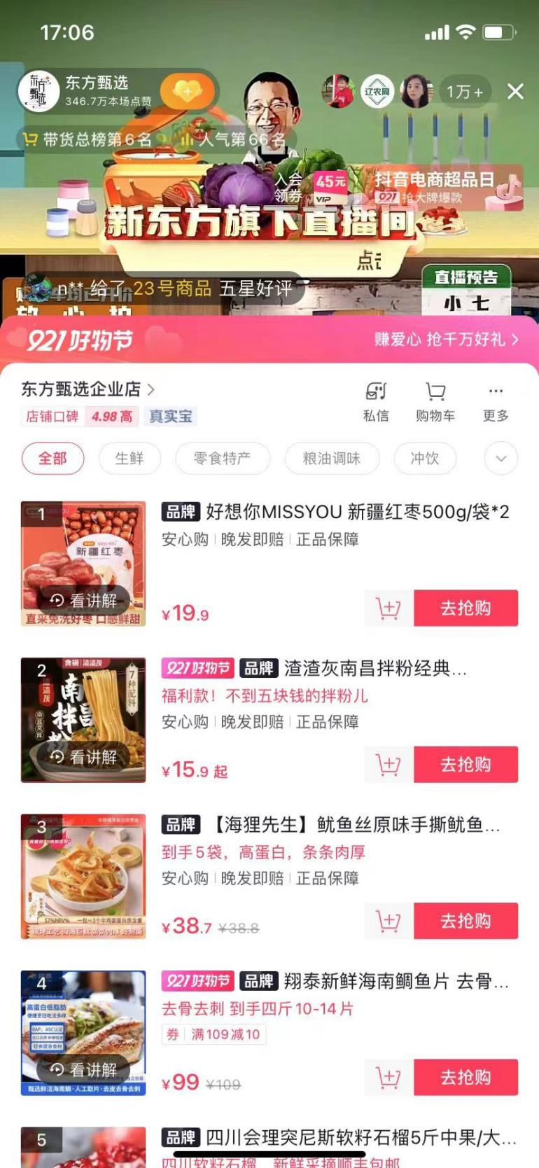事实上,打从一开始,俞敏洪和东方甄选就没想只停留在抖音一个平台。比如,在入驻抖音的同时,东方甄选开设多个微信公众号和视频号,还与有赞达成合作,上线小程序商城并接入视频号。此外,东方甄选还在淘宝、京东上开设旗舰店,产品以东方甄选的自营商品为主,目前正在筹备淘宝直播。