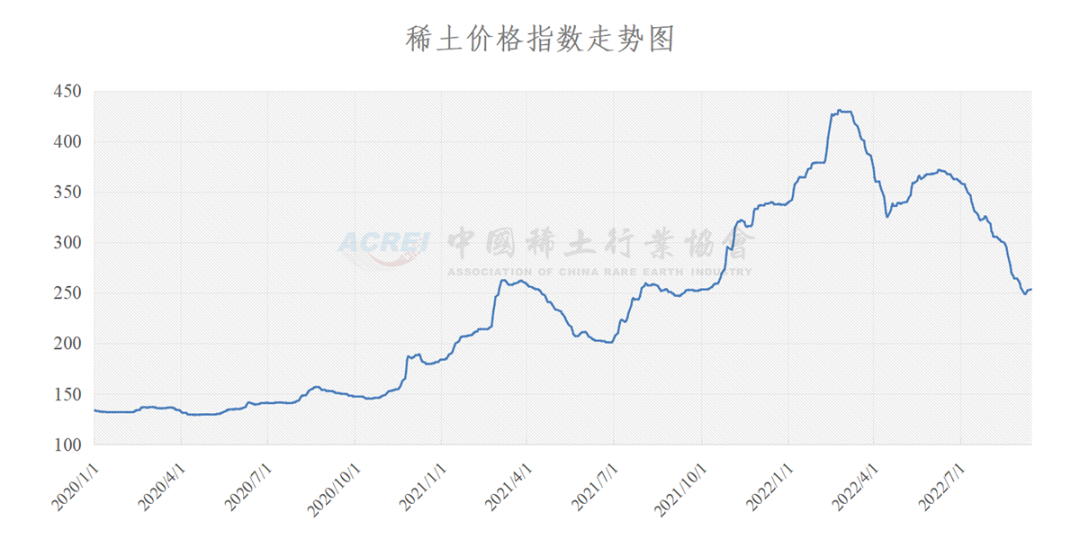 据中国稀土行业协会,9月13日,稀土价格指数报253.5,较9月9日上涨1.1点。