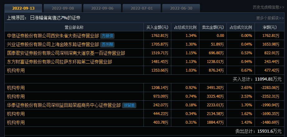股价方面,9月以来安凯汽车已发两次股票交易异常波动公告。9月13日,安凯汽车涨停,报收8.46元/股,成交额13.17亿元,换手率22.95%,盘后龙虎榜数据显示,一机构净买入477.42万元,四机构净卖出7806.42万元。
