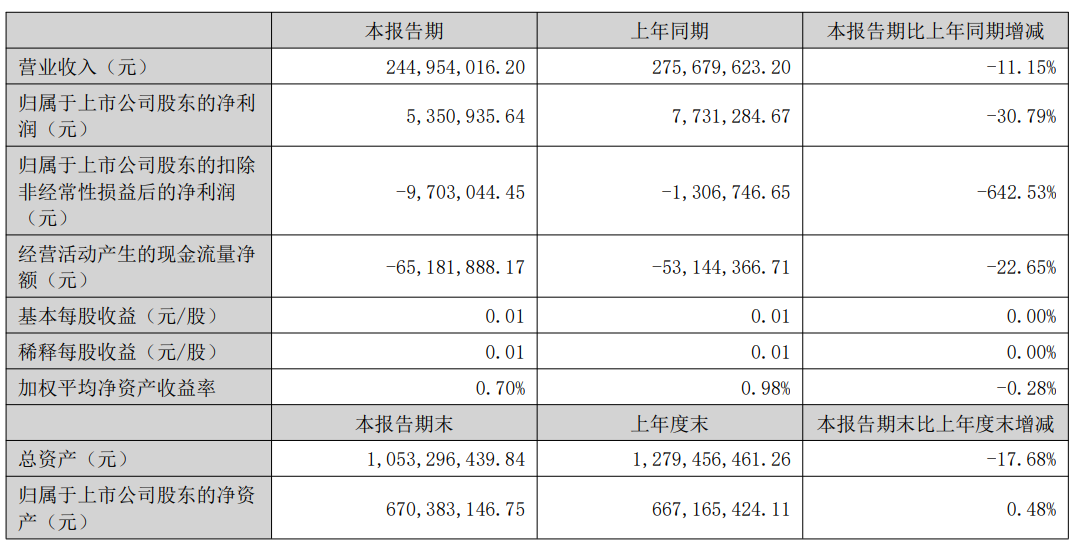 利润方面,上半年其净利润为535.09万元,较比上年同期的773.13万元减少了30.79%。