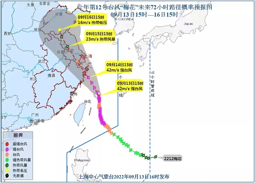2022年9月14日7时,上海发布台风黄色预警信号,上海市防汛指挥部同步启动全市防汛防台Ⅲ级响应行动。