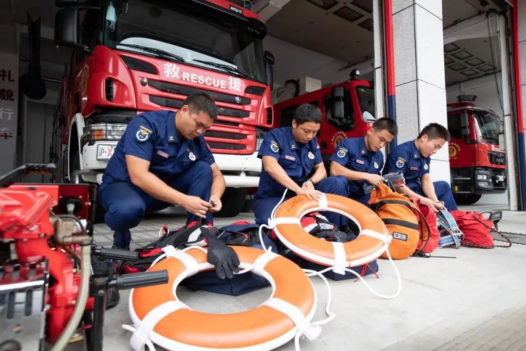 上海嘉定区、金山区消防救援支队、水上消防救援支队根据台风发展趋势,提前部署,加强值班备勤、应急预案和装备熟悉检查,落实落细各项防御工作,确保应急救援工作万无一失。为应对突发情况,各队站组织水域救援经验丰富的消防救援人员执勤,并检查救生衣、救生圈、水域救援服、救生绳索等水域救援装备,确保接到警情后能第一时间出动救援。