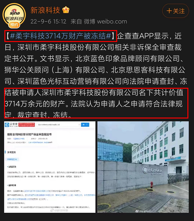 最近,柔宇科技价值3714万多万的财产被法院查封、冻结,被强制执行超过1亿。