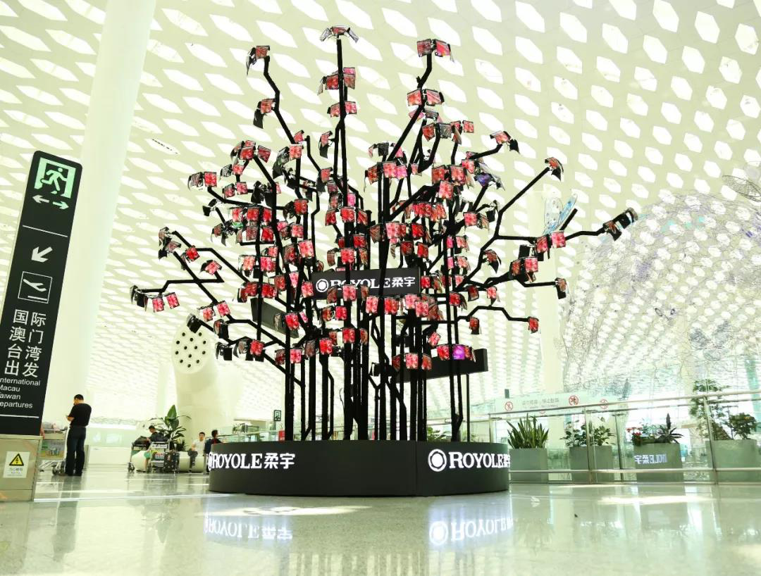 深圳机场里,挂满柔宇屏幕的树已经成为了“网红打卡地”。