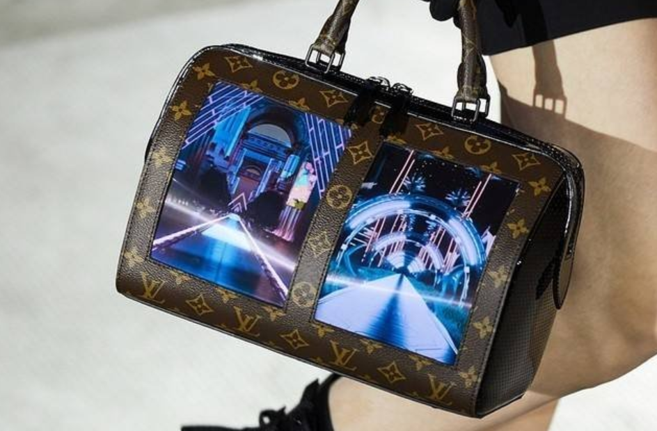 除了全球首款折叠屏手机,全球首款开发套件,甚至在LV大秀上,柔宇还亮相了全球首款柔性屏包。