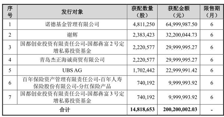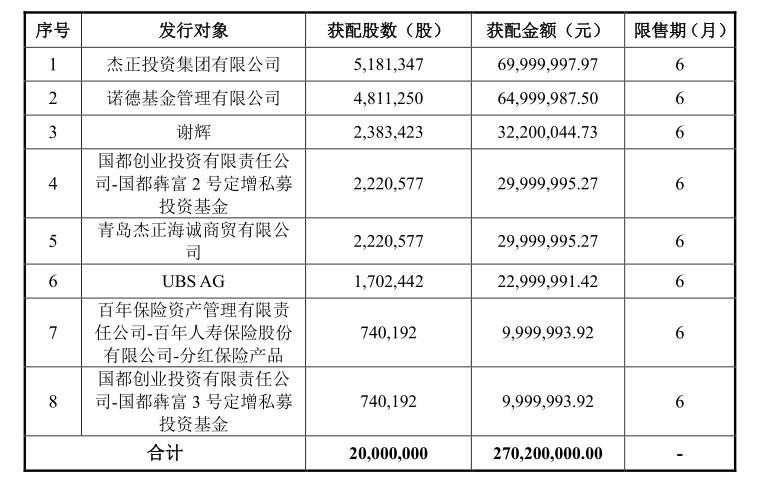 根据发行情况报告书,本次发行价格为13.51元/股,获配第一大投资者杰正投资因未在规定时间内完成缴款,发行人已经终止该协议,且杰正投资缴纳的200万元保证金不予返还。