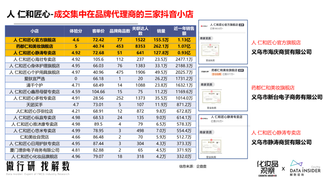 综合来讲,人仁和匠心在抖音所做的,不仅仅是授权给分销商,而是以差异化+高性价比产品抢占用户。
